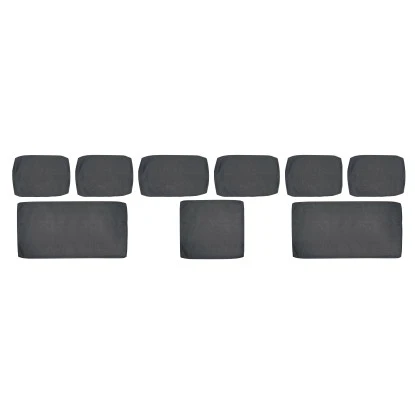 Das 9-teilige Kissenhüllen-Set in Dunkelgrau ersetzt die vorhandenen Bezüge des Lounge-Corner-Sets Bowdens und schafft eine neue Optik. Die Überzüge zeichnen sich durch eine hohe Strapazierfähigkeit und Langlebigkeit aus. Ihr Obermaterial besteht aus 100 % Polyester. Für eine Verstärkung sorgt das Vliesfutter aus 100 % Polypropylen. Bei Bedarf lassen sich die Hüllen unkompliziert reinigen. Sie sind bis 30 °C waschbar. Das Set besteht aus sechs Bezügen für die Rückenkissen und aus drei Überzügen für die Sitzauflagen. Ihre Größen sind jeweils für die originalen Gartenkissen optimiert.
